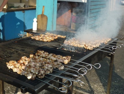 A classic Palermo delicacy: small intestines wound around spring onions, barbecued by the roadside and eaten by happy Sicilians