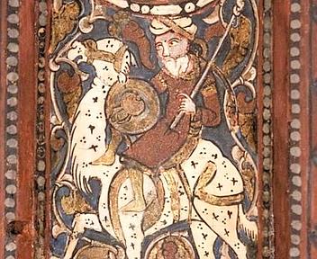 These are some more colour pictures of the ceiling. My favourite image is the man with a turban, riding a white camel. I would like to know why this black man is facing one way whilst his legs are running the other way.
