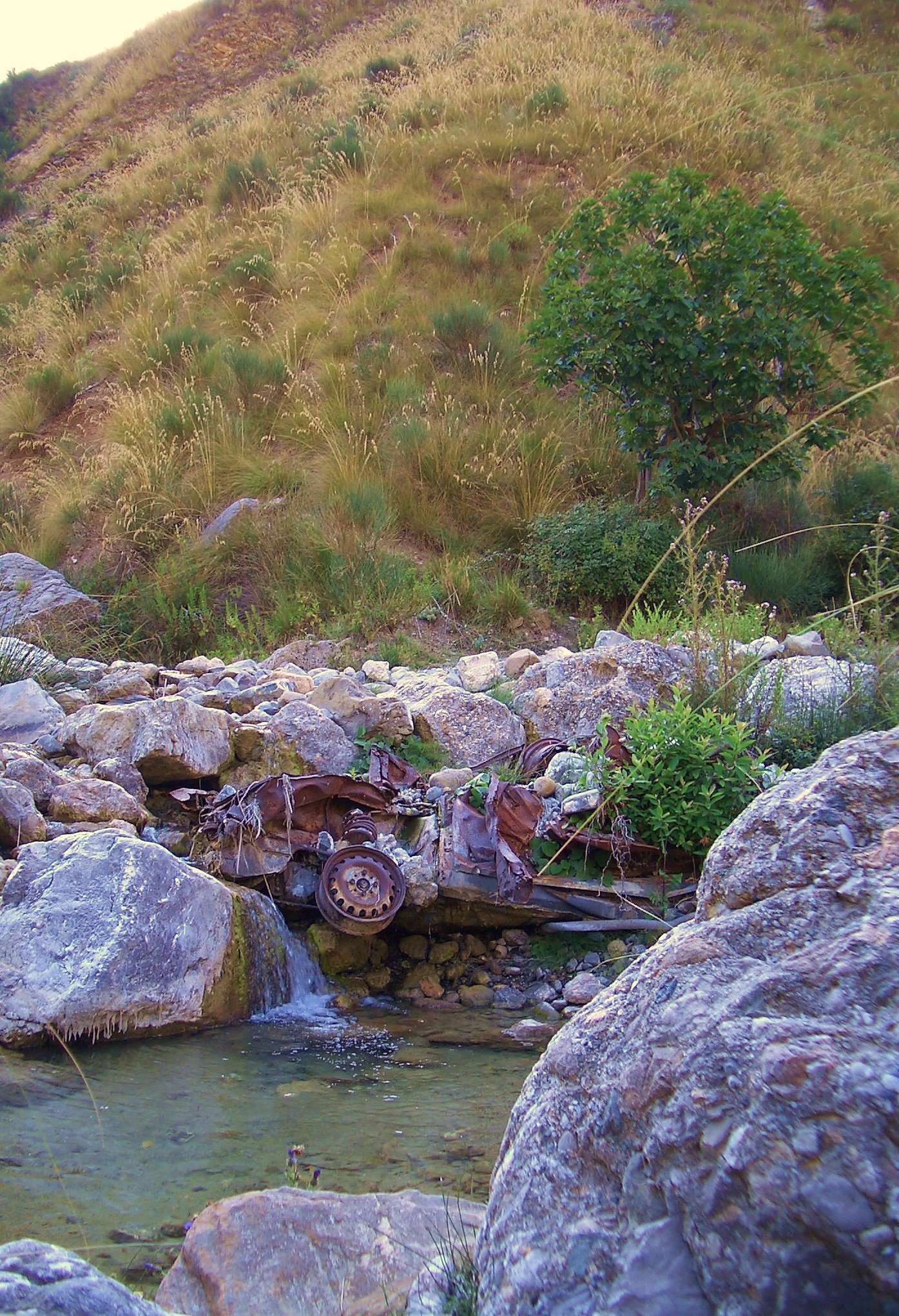This car plunged to the bottom of one of Sicily’s beauty spots in a spectacular accident, in the Parco dei Nebrodi nature reserve. It sits at the bottom of a ravine so deep and inaccesible that there is no way to remove it, so the locals watch and wait patiently for Mother Earth to break it down to its basic elements and reclaim it.