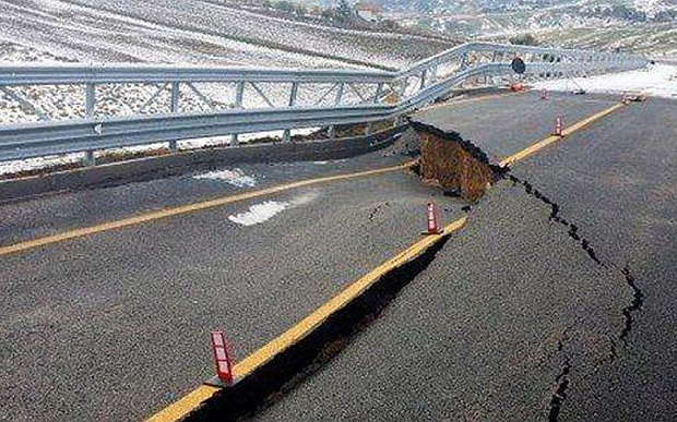 Here’s a photo of a road in Sicily which collapsed just ten days after it was built.